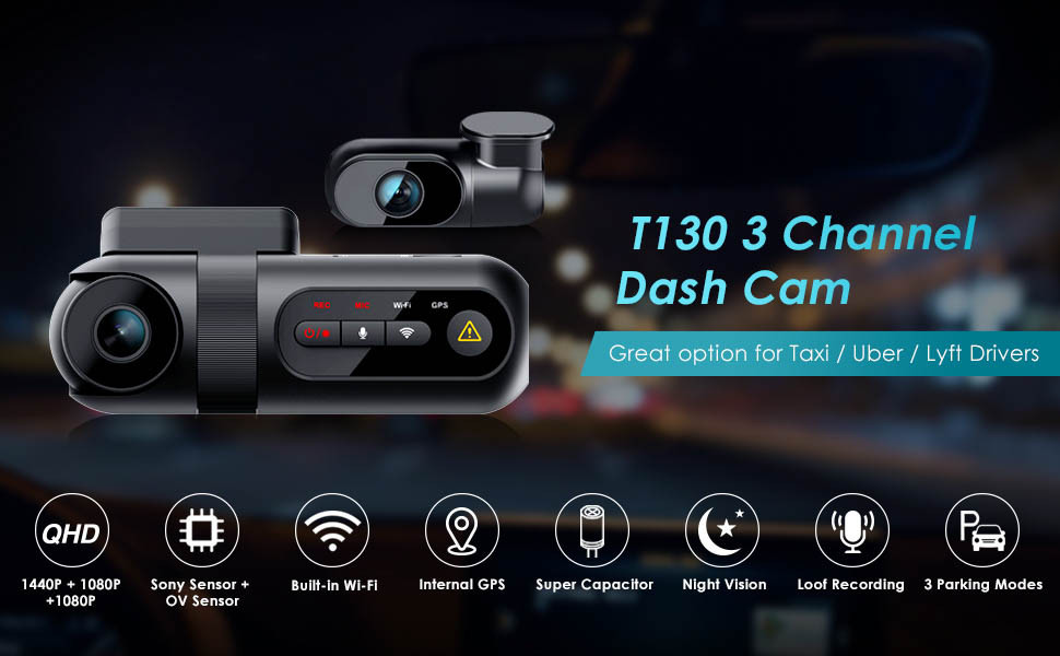 Now introducing the VIOFO T130 for 3-Channel FRONT + REAR + INTERIOR recording!